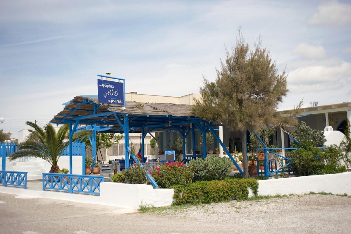 To Psaraki was created by Thanasis and Angeliki, inspired by a love for honest, simple food rooted in tradition. With over 20 years in the culinary world and multiple awards for Mediterranean cuisine, they envisioned a return to the essentials — fresh ingredients, bold flavors, and heartfelt hospitality. Our menu follows the seasons and the soul of Santorini. We highlight the island’s iconic produce — cherry tomatoes, fava, capers, and white eggplant — as well as lesser-known treasures like round zucchini, kardamida, katsouni cucumber, and fresh peas. Every dish honors the island’s rich character — pure, flavorful, and true. Enjoy your meal — from our table to yours!