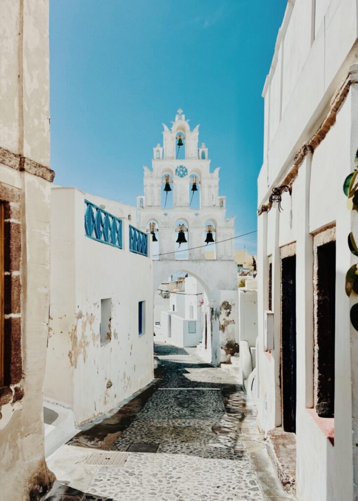 Once the capital of Santorini, Pyrgos is home to churches, monasteries, and the Kasteli (Venetian castle), where you can enjoy sweeping views from the top. The village has preserved its medieval layout and is perfect for slow walks, photography, and quiet exploration.